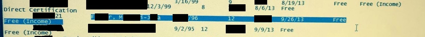 All we know is that it appears that Foster’s son is on the “Lunch” report as “Free (Income)”…here is the redacted line of the report: