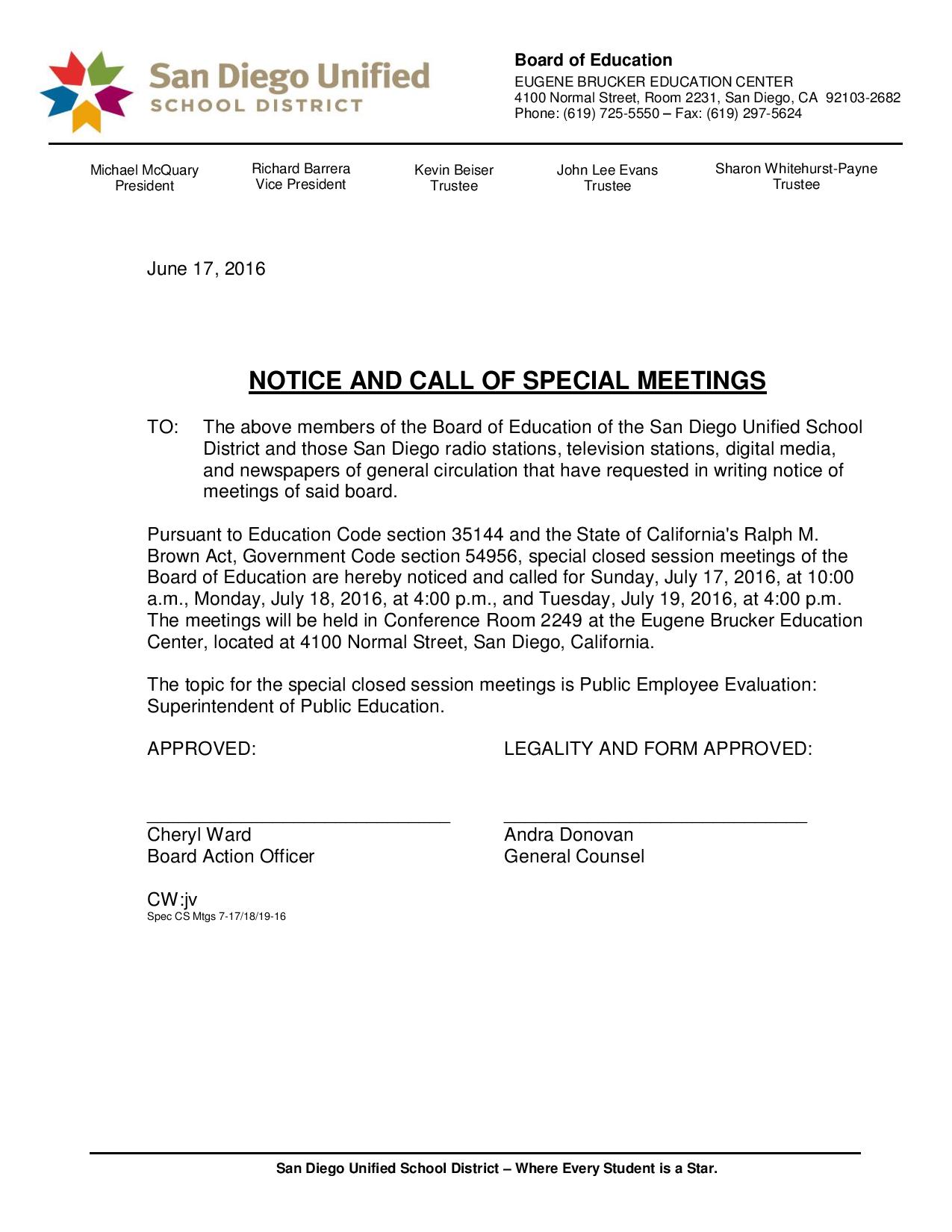 Since Marten destroyed the San Diego Unified School District (SDUSD) website making it virtually impossible to find any information on the website we will set the evaluation frame from August, 2015 through July 2016.