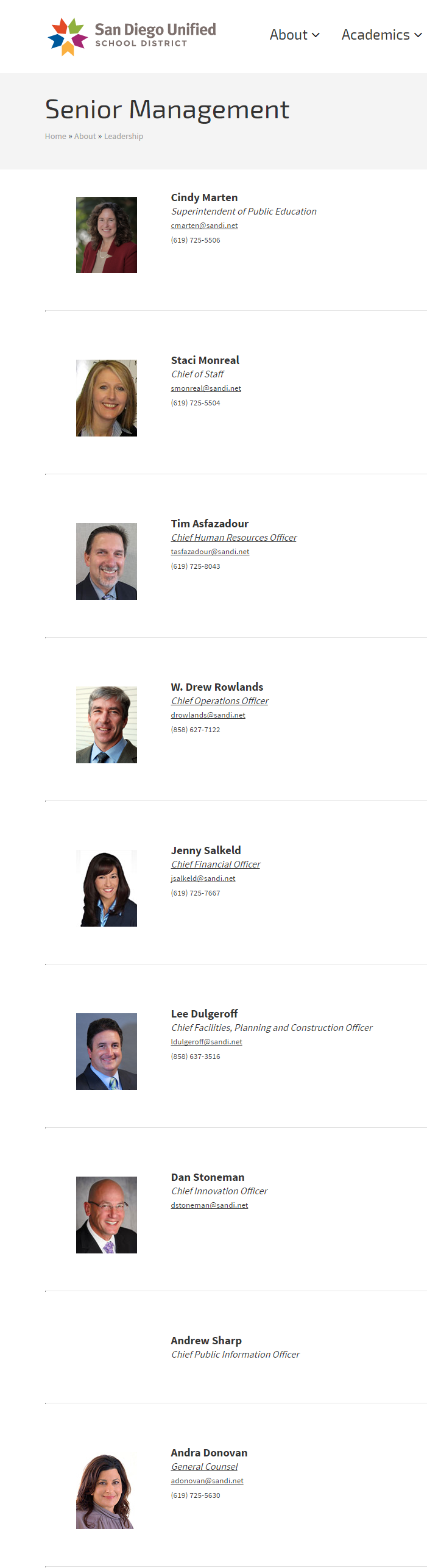 THESE are the TOP NINE, most influential, SENIOR executives in the San Diego Unified School District
