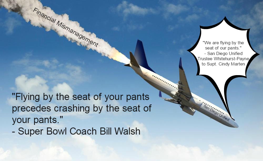 When it eventually came Trustee Whitehurst-Payne’s chance to speak, she described her frustration. like the frustration of THOUSANDS of SDUSD Stakeholders, with the lack of a coherent and transparent budgeting and deficit reduction plan that provides the opportunity of a line by line review to effectively determine the best possible budget reductions and made available to all on the SDUSD website instead of “flying by the seat of our pants”. Here are her comments: