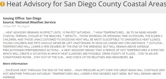 87 Degrees – feels like 92…UV Index 10 of 10…and another Heat Advisory: