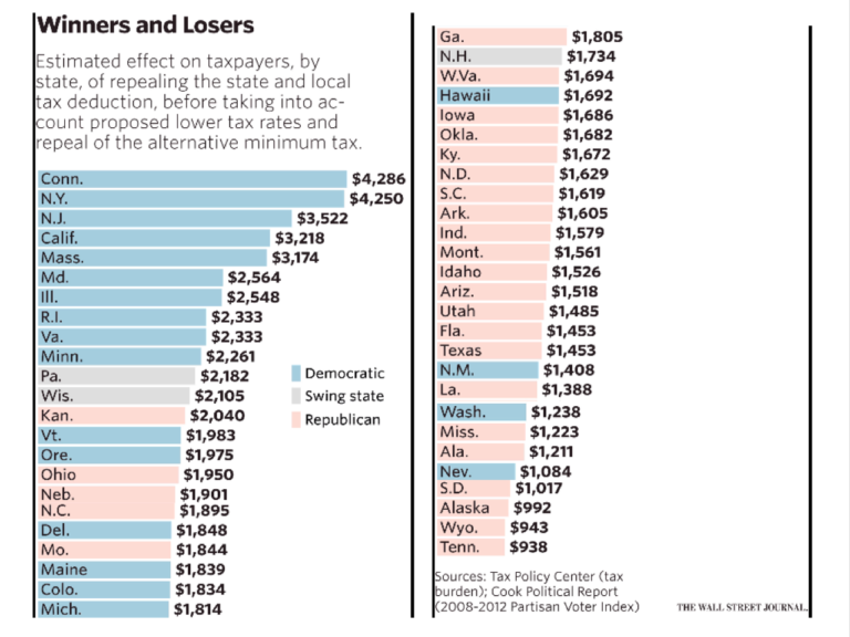 At its heart, this tax plan is a giant giveaway to the super wealthy coupled with a cut in support for public schools and other services on which middle class and low-income families rely. Because a deficit blowing $1.5 trillion tax cut for corporations and billionaires like Betsy DeVos isn’t enough for Congressional Republicans, they’ve got to come up with additional offsets. One of the biggest on their list is ending the ability of middle class families to deduct state and local income and sales taxes that fund public schools.