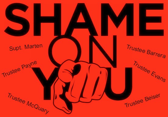 “Winning” SD the County Taxpayers Association “2017 Regional Golden Fleece” for Fleecing District Taxpayers apparently was considered a badge of honor by the inept and corrupt Elementary School Superintendent Cindy Marten and her crony Trustees Richard “Tricky Dick” Barrera, Kevin “Dismissal with Prejudice” Beiser, John “You Can’t Handle the Truth” Evans, Michael “Foggy Bottom” McQuary and Sharon “Flying By The Seat of Our Pants” Payne.