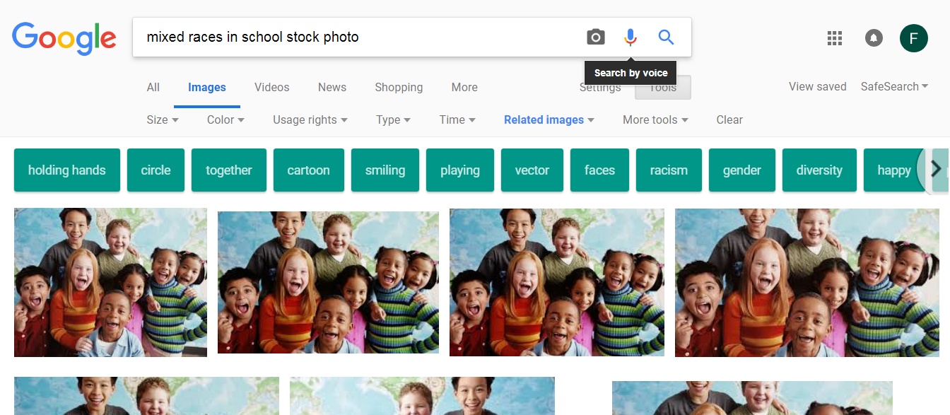 As for the photo, it is really a “mixed races in school” stock photo..shown below in a Google Search.