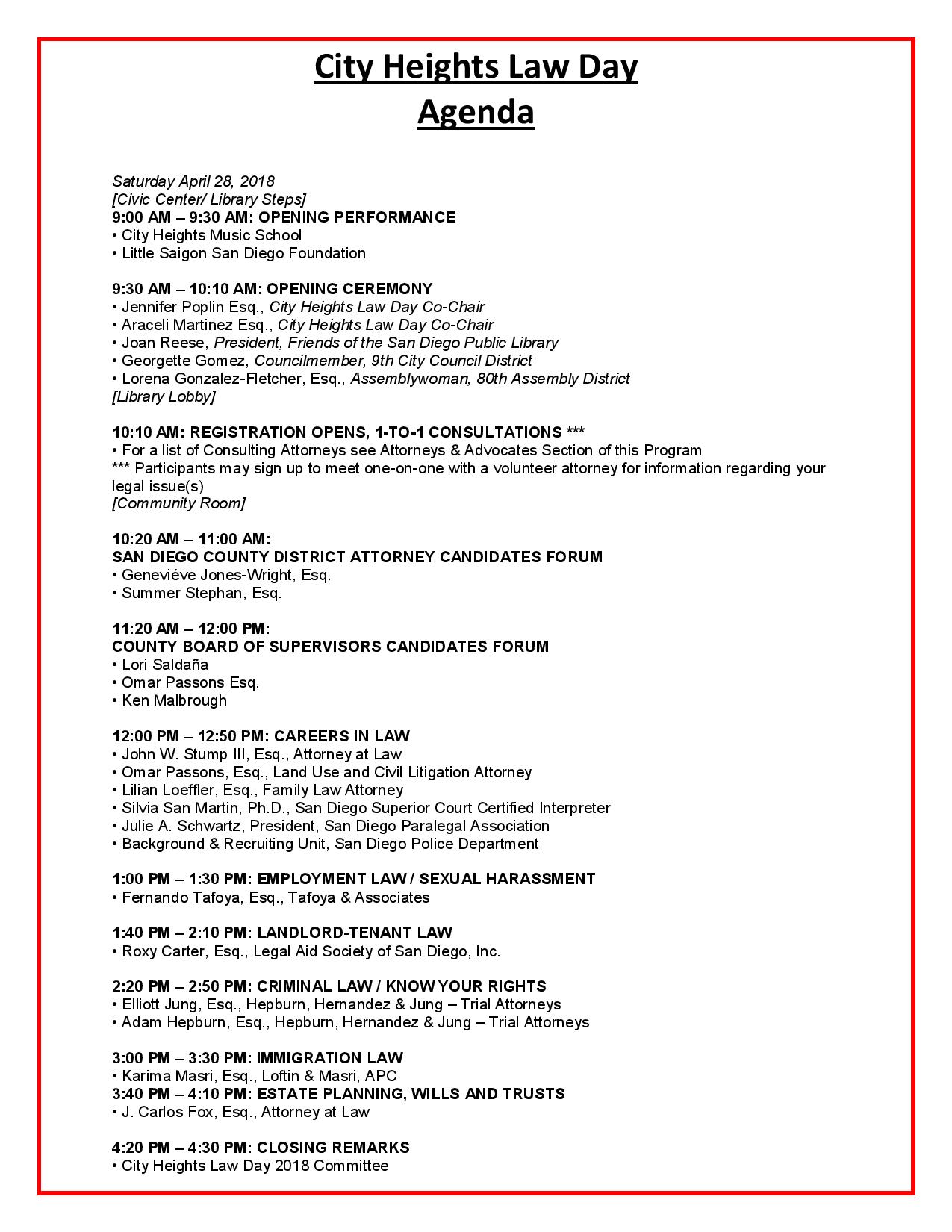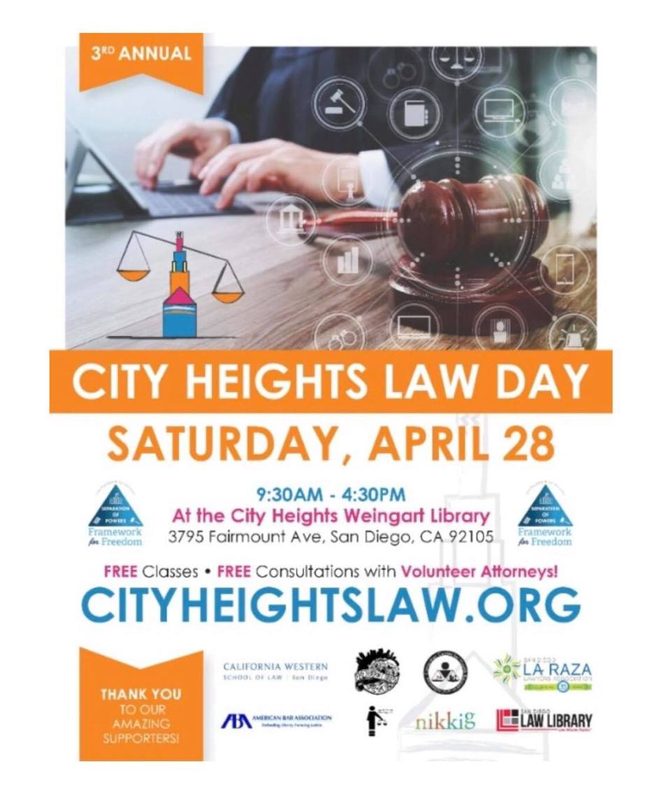 Several community organizations will be presenting “Law Day 2018” Saturday, April 28th, 2018 beginning at 9:30 am at the