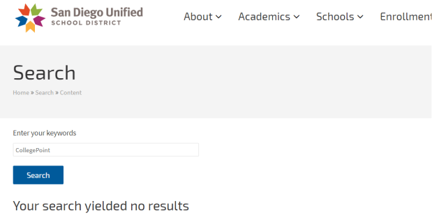 We searched for CollegePoint on the SDUSD website but turned up no results…
