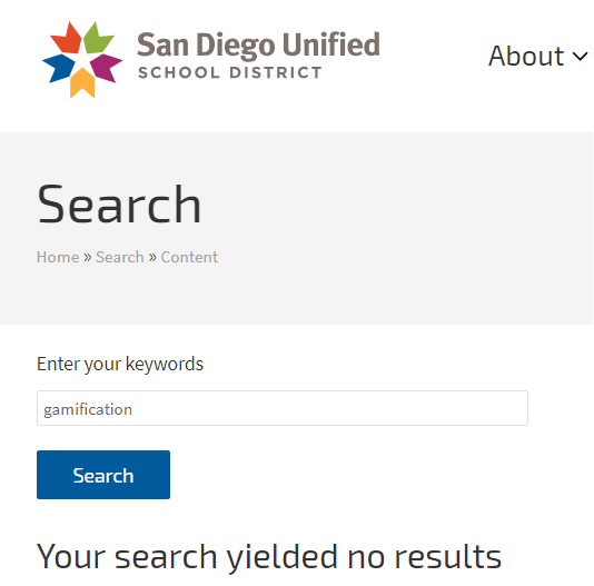 Being such a huge school district we were sure that there must be some gamifying initiative in the SDUSD. After all, the author is a fourth grade teacher in the Metropolitan School District of Wayne County Indiana (MSD of Wayne County)…a tiny school district with only 16,000 students….7 1/2 times SMALLER than the SDUSD.