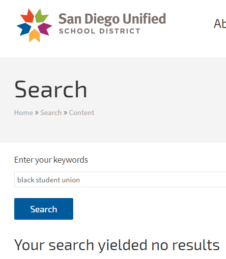 To be sure we searched the SDUSD website for ANY reference to Black Student Unions: