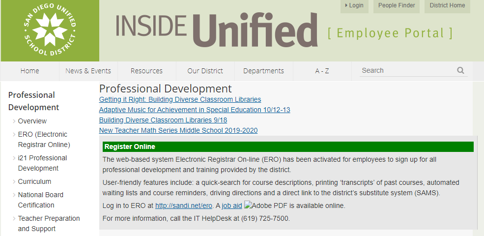 Based on reports from our sources in all the SDUSD clusters regarding mental health issues at school sites (including student suicides) we decided to search the SDUSD website Employee Portal for any student curriculum or staff professional develioment related to Mental Health training.