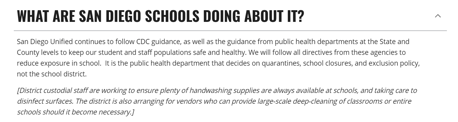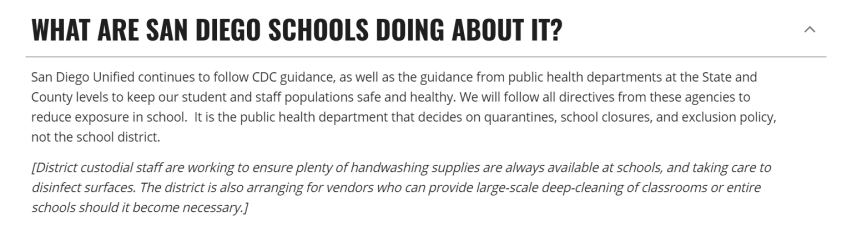 In the FAQ’s we found WHAT ARE SAN DIEGO SCHOOLS DOING ABOUT IT?: