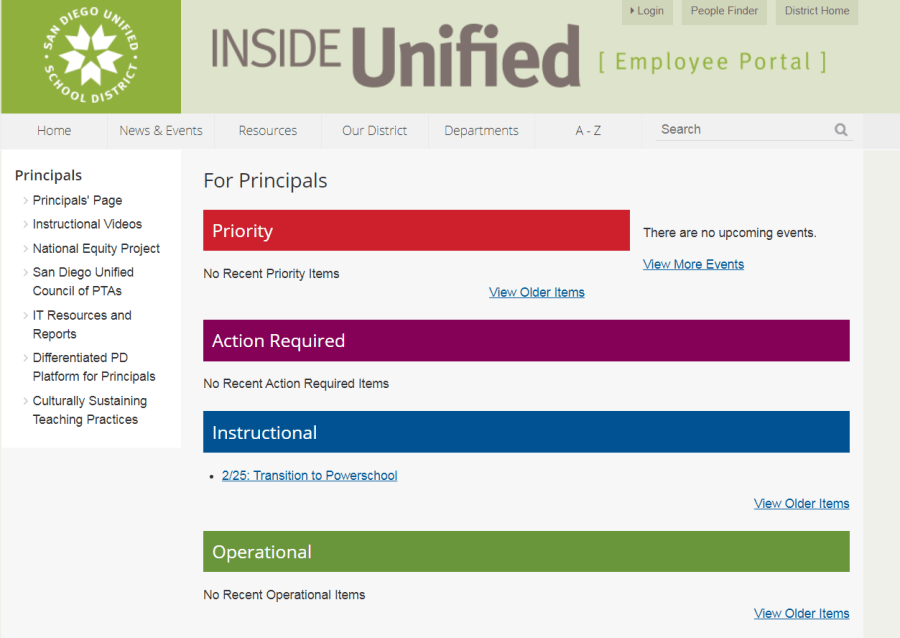 And on the SDUSD Principals Page NOT EVEN A MENTION OF CORONAVIRUS: