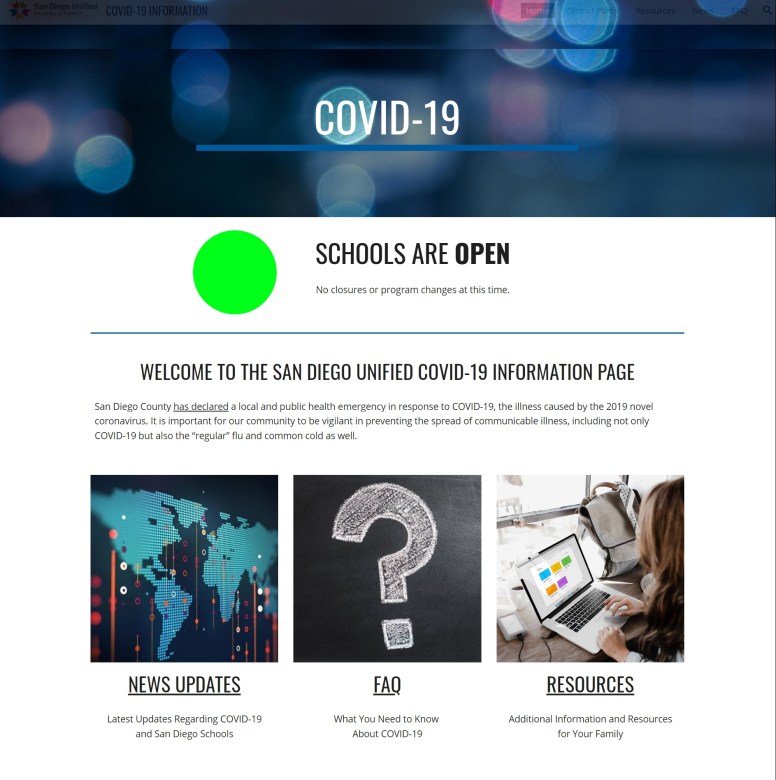 We clicked the “INFORMATION” link for the Coronavirus and were sent to a SDUSD Google website and got the following: