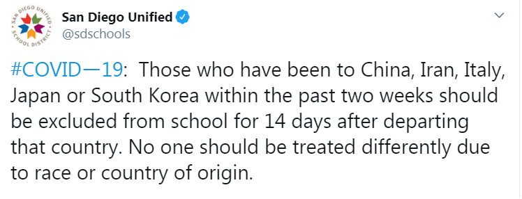 Is that the final direction regarding Coronavirus attendance to SDUSD Stakeholders including Students, Teachers and Principals?