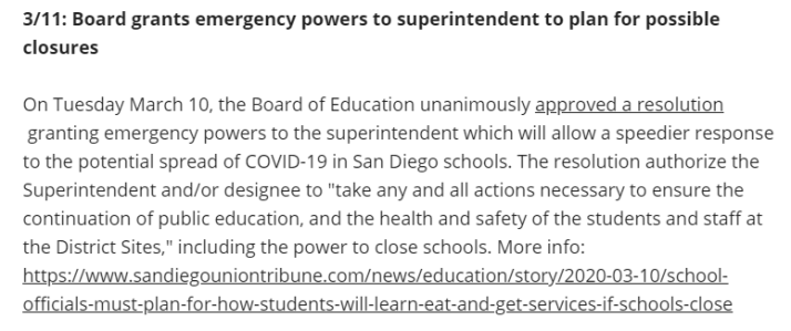 Since our Sunday Reads post…unfortunately…the SDUSD School Board has also granted the totally incompetent ESS Marten with “emergency powers”: