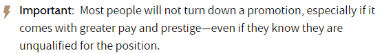 “The Peter Principle is thus based on the logical idea that competent employees will continue to be promoted, but at some point will be promoted into positions for which they are incompetent, and they will then remain in those positions because of the fact that they do not demonstrate any further competence that would get them recognized for additional promotion.”