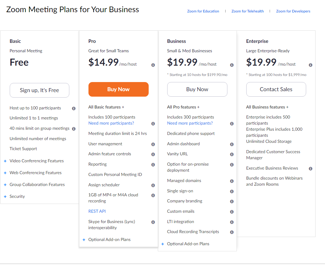 As you can see, the largest user package is the Enterprise version that costs $19.99/mo. In general, if the SDUSD requires 6,000 teachers and 500 other employees to have HOST access to Zoom, that amounts to approx. $130,000/mo. For 3 months it is around $400,000. For K-12 School Districts like the SDUSD, Zoom has Zoom for K-12 Education that “Integrate seamlessly with your LMS – Moodle, Canvas, Desire2Learn, Sakai, and Blackboard” and provides “Accessibility for all learners – Ensure that everyone can participate equitably with closed captioning and keyboard shortcuts” as a subset product specifically for special Student groups like English Language Learners (ELL), Special Education and other Students and Families with special requirements including struggling students.