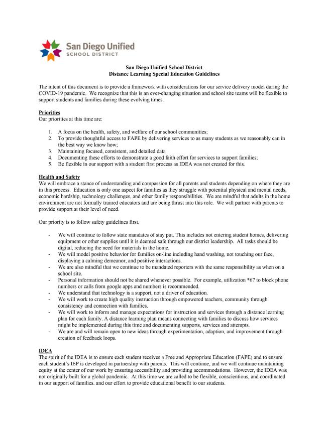 On top of that, no special COVID-19 Pandemic instructions for non-SPED IEP Students has been provided to any SDUSD personnel or Families.
