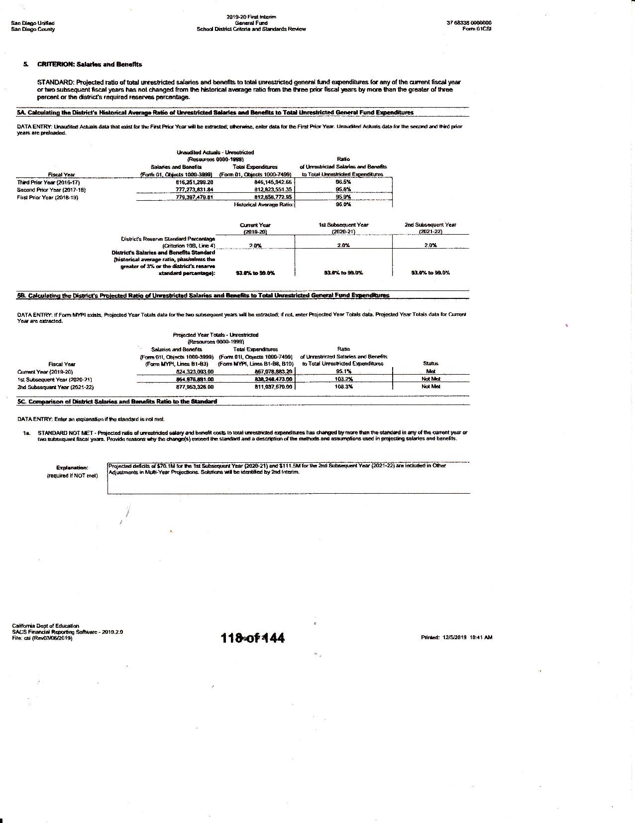 And if you think the SDUSD under Marten is going to change, look at the 2019/2020 First Interim Financial Presentation and SACS Report on page 30 “SDUSD Salary to Budget Ratio” released December 10, 2019:
