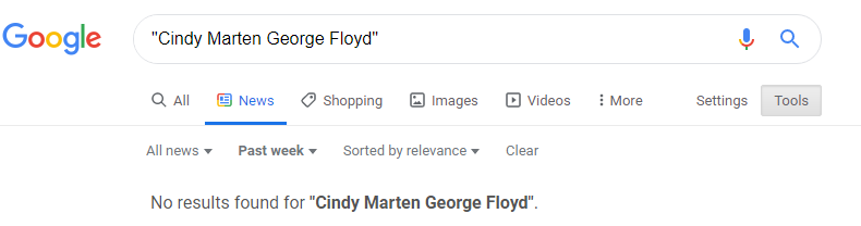 Then we searched the news for “Cindy Marten George Floyd” looking for a quote or other news story relating to how Students can deal with this racist murder.