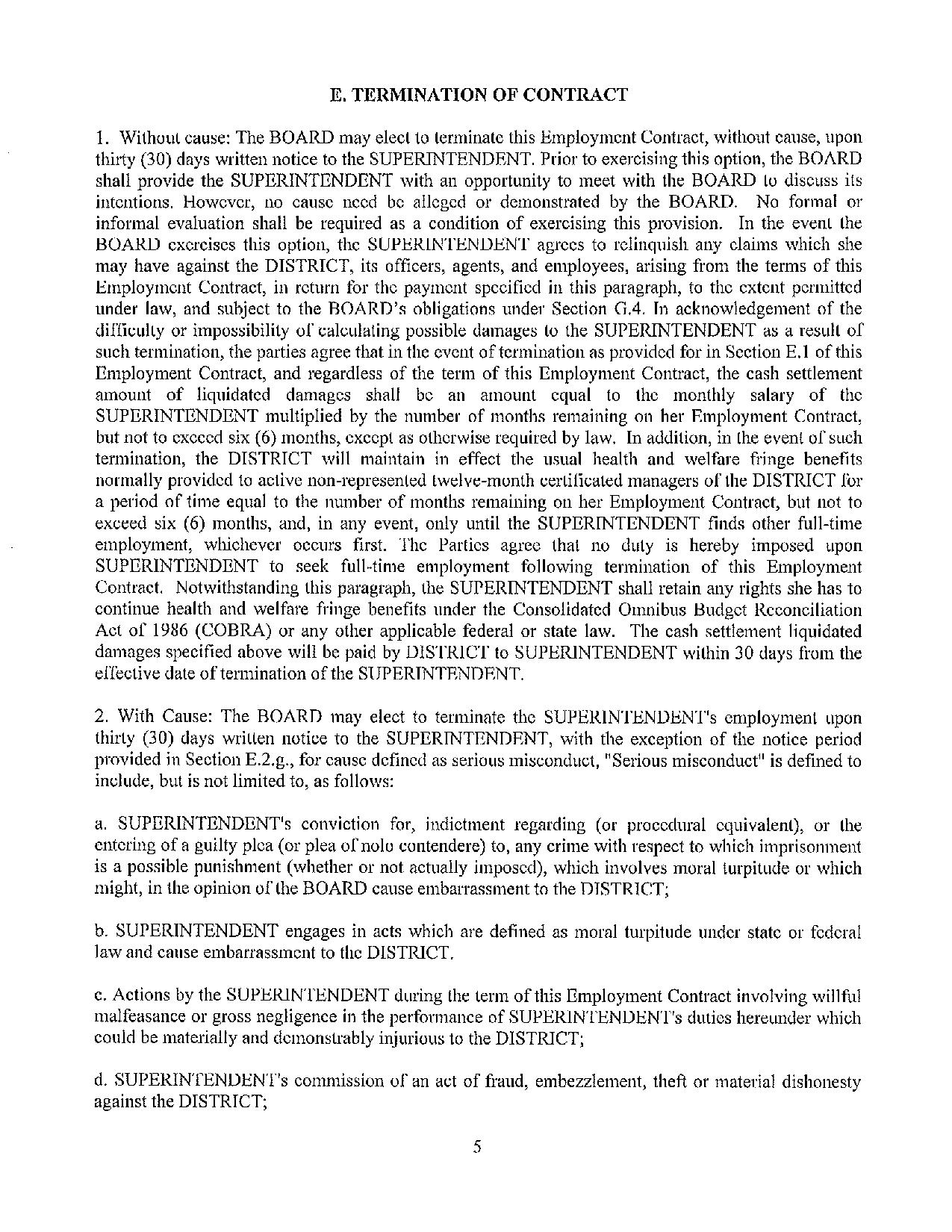 A copy of Metcalf’s contract reads “The Board shall be entitled to terminate the Administrator’s employment at any time during the term of this Contract when it determines that Administrator has engaged in acts of moral turpitude, misconduct, dishonesty, fraud, insubordination, incompetence, inefficiency…”