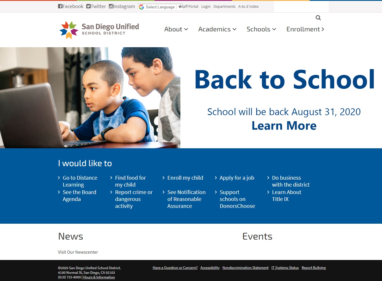 After we posted our District Deeds Juneteenth post around 12 noon on June 19, 2020 we checked the SDUSD website main page to see how the SDUSD “honored” the historic date: