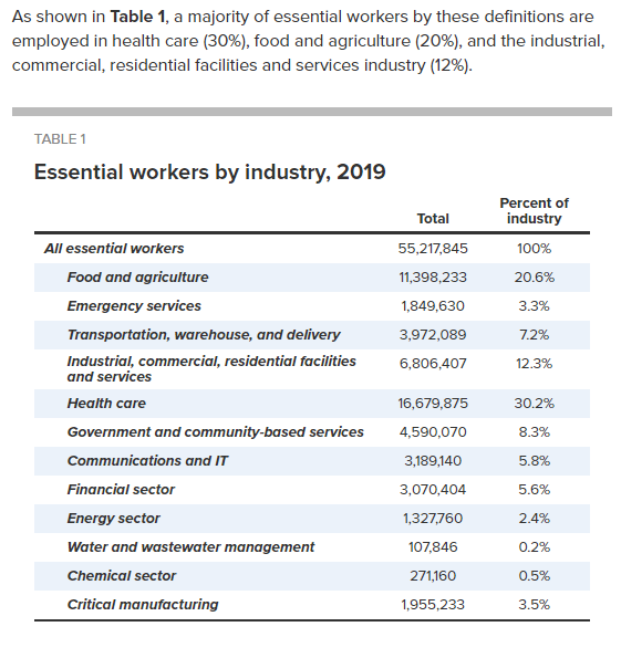 Are Teachers less “essential” than the following workers listed by the Economic Policy Institute?