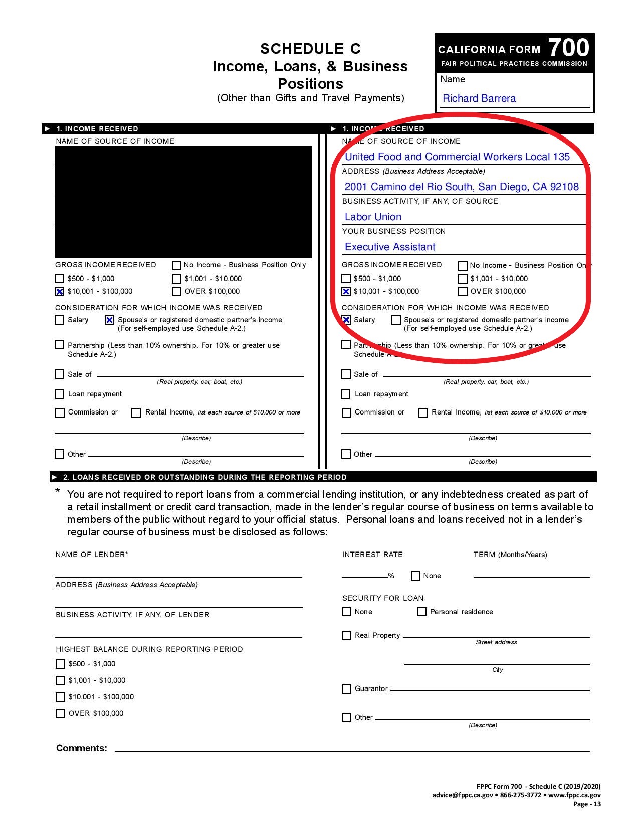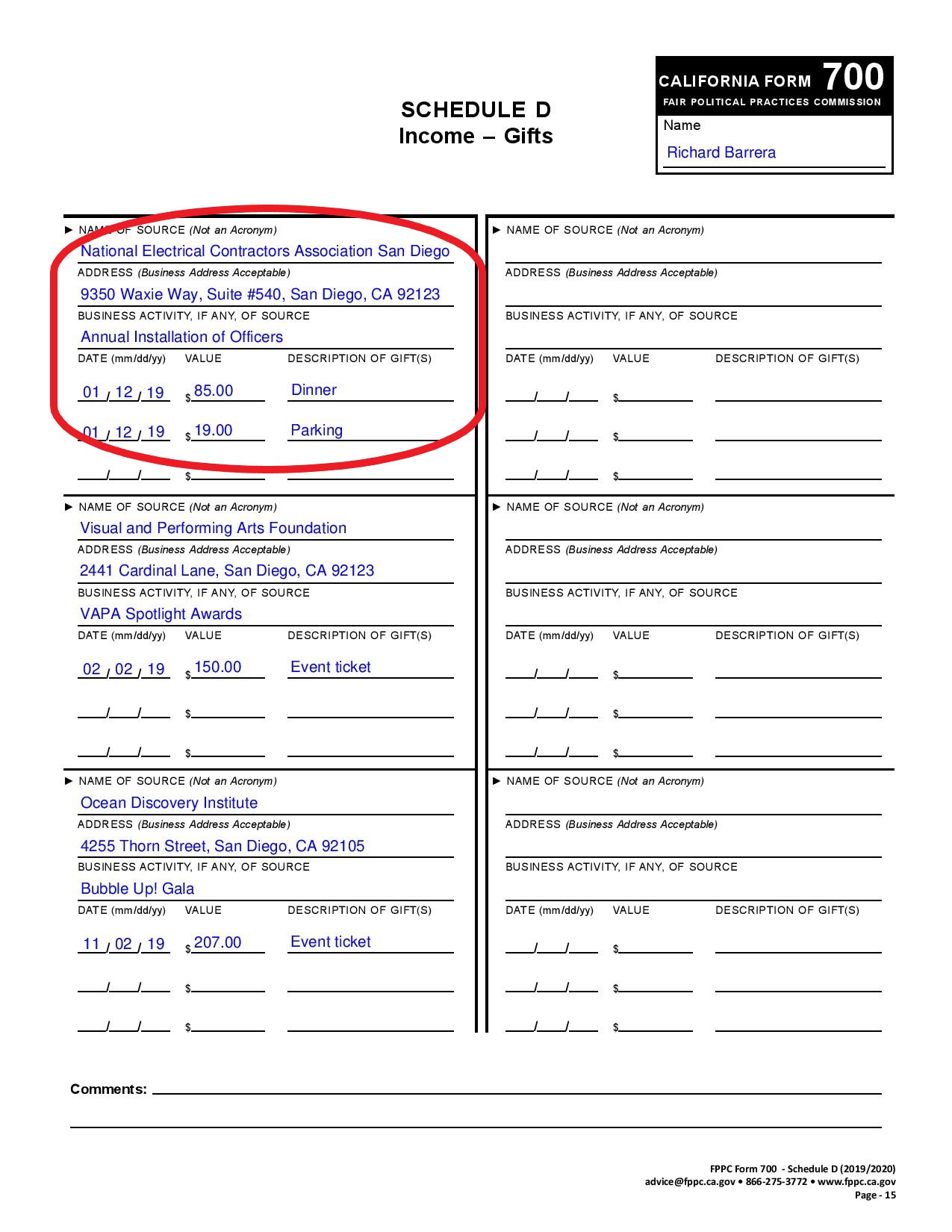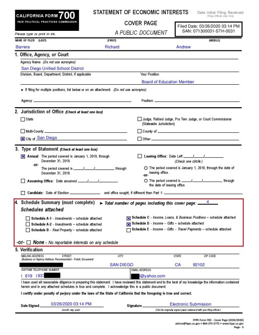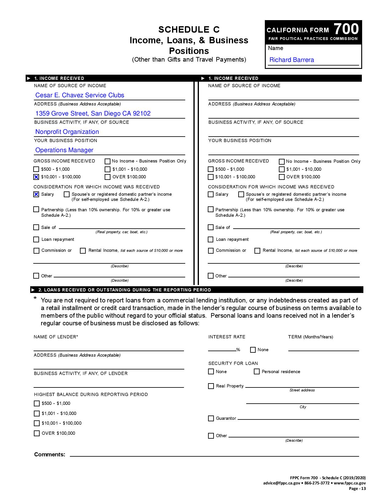 Here is Barrera’s 3/26/20 California Form 700 Statement of Economic Interest: