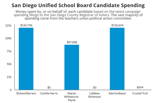 The new Board of Education candidate Bazzo, handpicked by Tricky Dick, is also emulating the union money grab as the replacement clone of outgoing SDUSD Trustee John “Empty Suit” Evans.