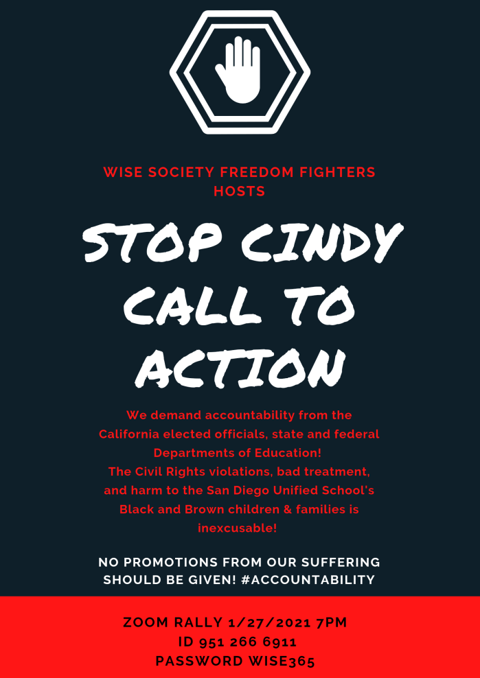 District Deeds strongly urges our readers to attend a Zoom Rally tonight, Wednesday, January 27, 2021 at 7:00 pm PT to prevent “in transit” San Diego Unified School District Superintendent Cindy Marten from being approved by Congress as United States Deputy Secretary of Education.