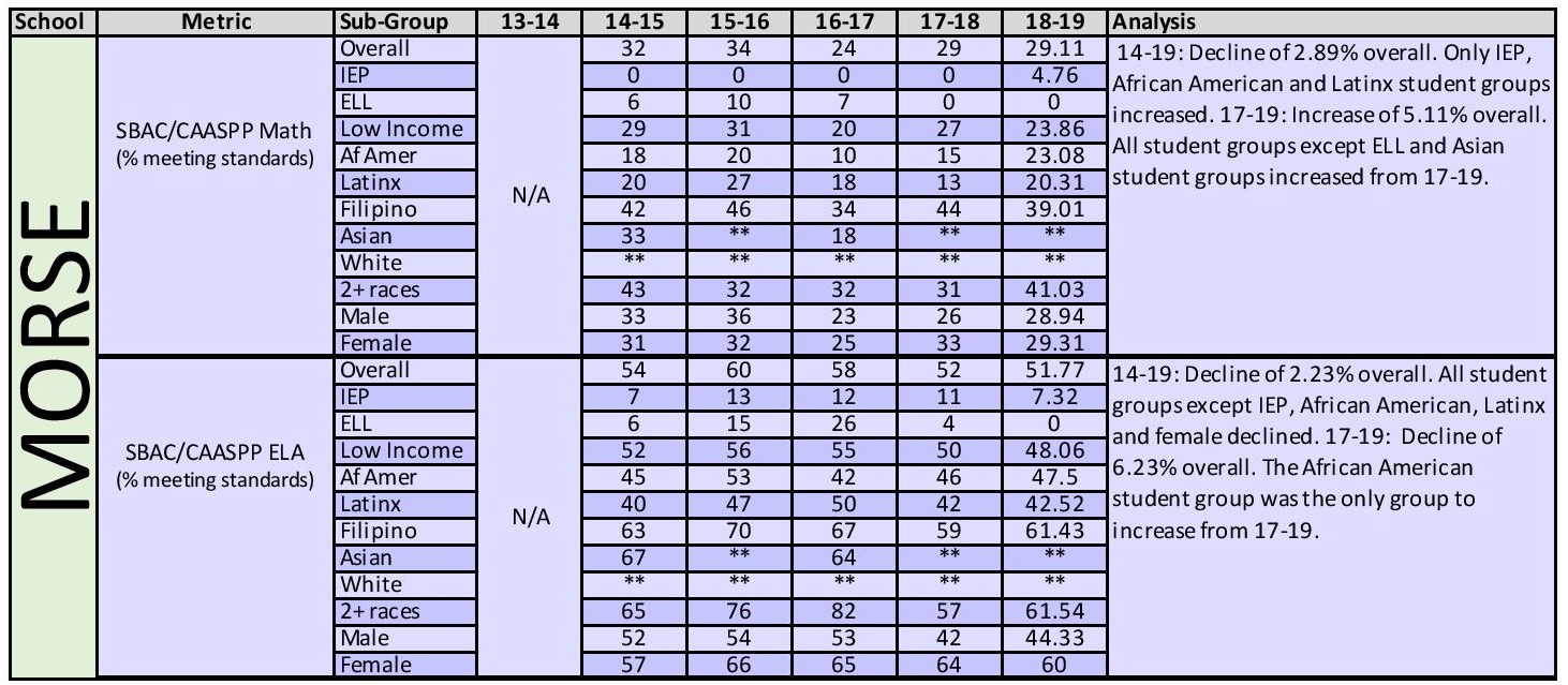Using Morse High School. here is an example of the data compiled for each school listed: