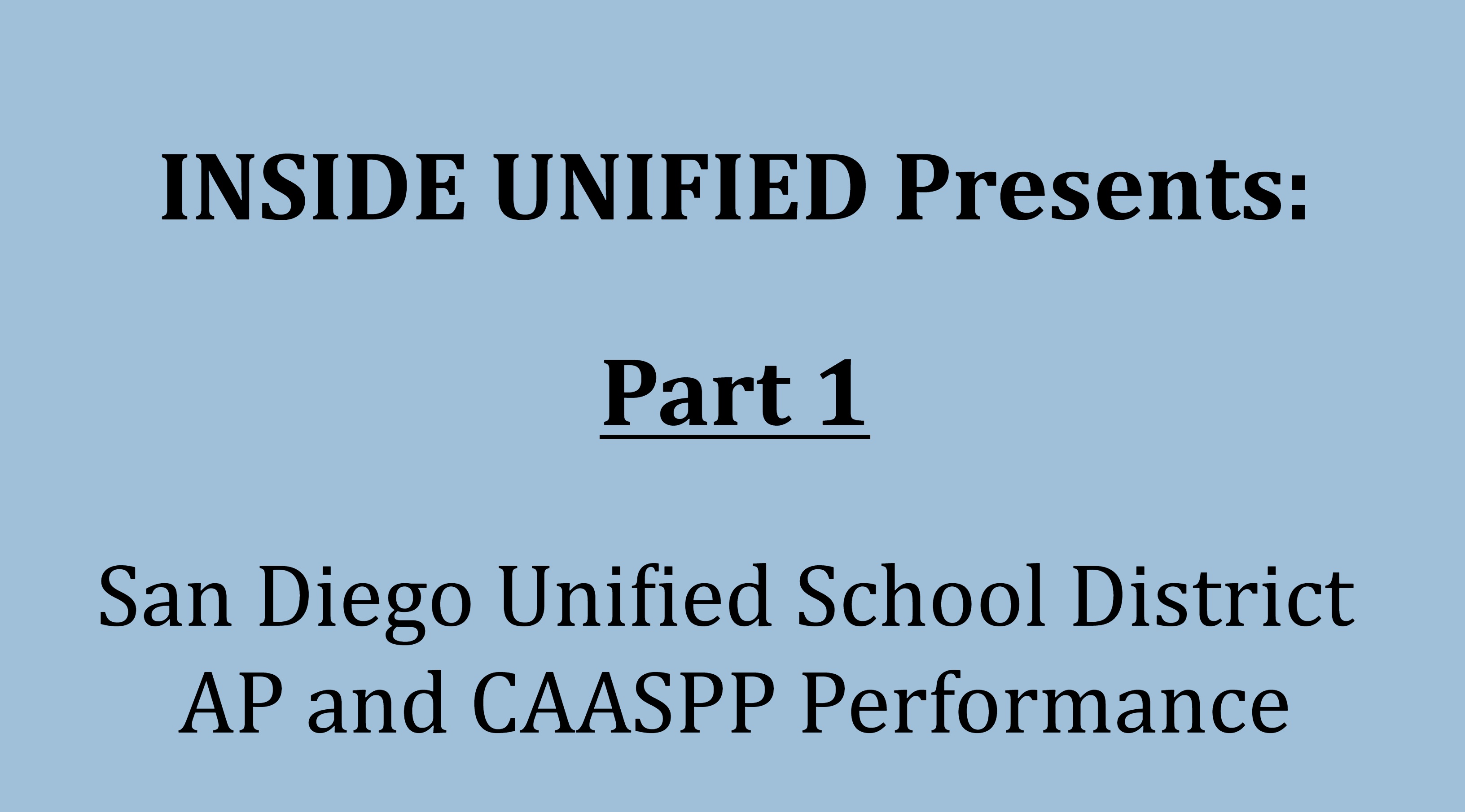 Today is Part 1 of the 3 part series and features the SDUSD Advanced Placement (AP) and California Assessment of Student Performance and Progress (CAASPP) trending analysis and conclusions.