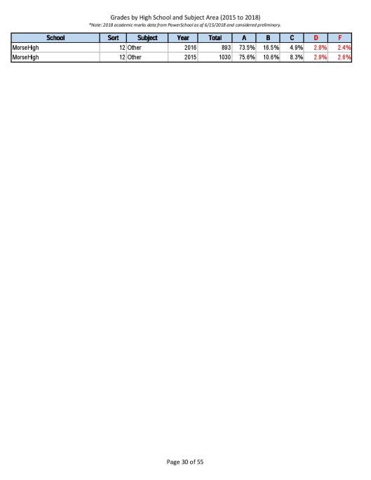 Here is Morse High School Grades after Jacksons’ Elementary and Middle School “improved equity” efforts:
