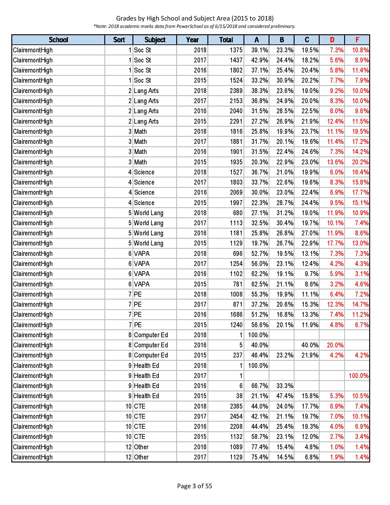 Here is Clairemont High School Grades after Jacksons’ Elementary and Middle School “improved equity” efforts: