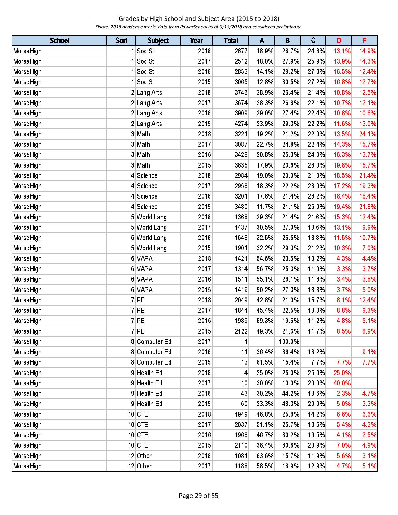 Here is Morse High School Grades after Jacksons’ Elementary and Middle School “improved equity” efforts: