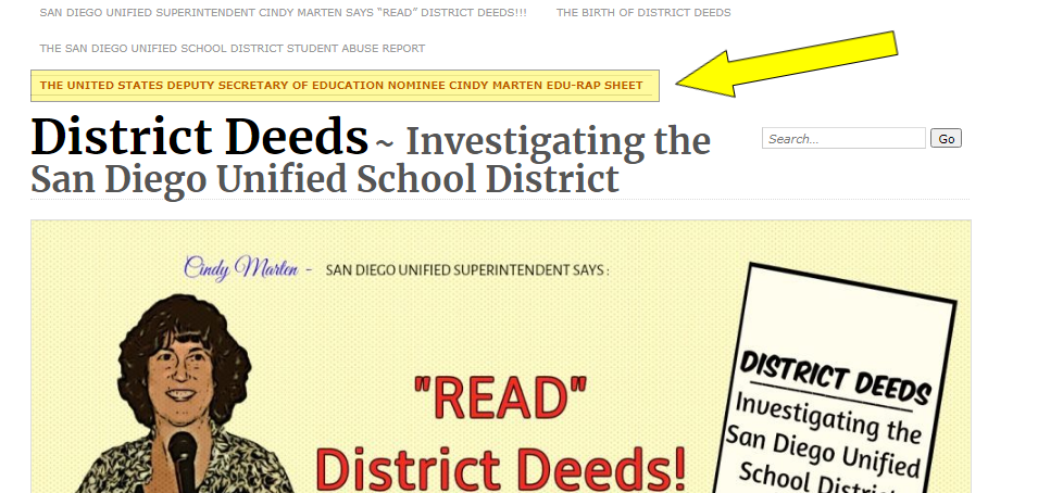 The following District Deeds Posts represent the numerous Educational, Financial, Operational and Human Resource Leadership incompetence offenses of former San Diego Unified, current United States Deputy Secretary of Education nominee Cindy Marten.