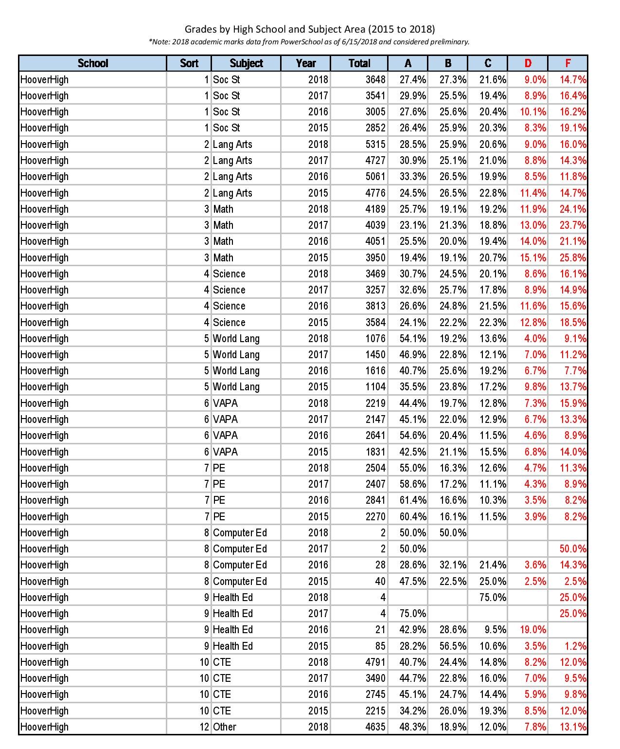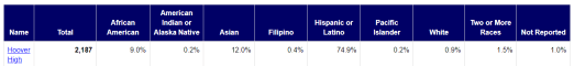 Now let’s look at let’s look at the 2017/18 Student Profile from CDOE Dataquest and 2015 – 2018 Grades for Hoover High School: