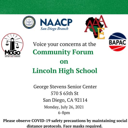 District Deeds received the following important communication from members of the Lincoln High School community. Forum panelists may include both San Diego Unified School District and City of San Diego leadership officials.