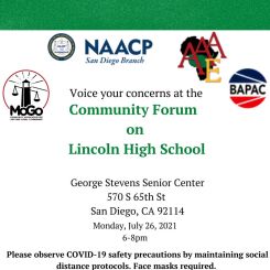Last Saturday District Deeds posted COMMUNITY FORUM ALERT – MONDAY, JULY 26, 2021! Topic: Lincoln High School