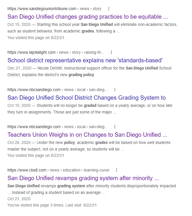 So what has happened since the SDUSD made the big grading strategy propaganda announcement in October, 2020?