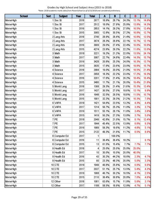 Here is a chart illustrating the above performance data for the High Schools selected: