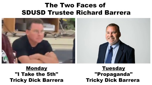 Is there any way that an SDUSD Stakeholder would describe corrupt liar SDUSD Trustee Richard “Tricky Dick” Barrera “cozy and welcoming”?