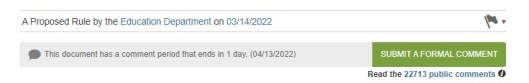 As you can see, the comment period ends in ONE DAY! We are not sure if that means at midnight tonight (Tuesday, 4/12/22) or midnight tomorrow (Wednesday, 4/13/22) so better safe than sorry…