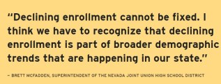 According to state data, Nevada Joint Union High’s enrollment was stable before the pandemic at around 2,800 students. As of Friday, McFadden said, enrollment is at 2,605. He said he lost 197 students since the school year started, which translates to more than $2 million in lost funding.