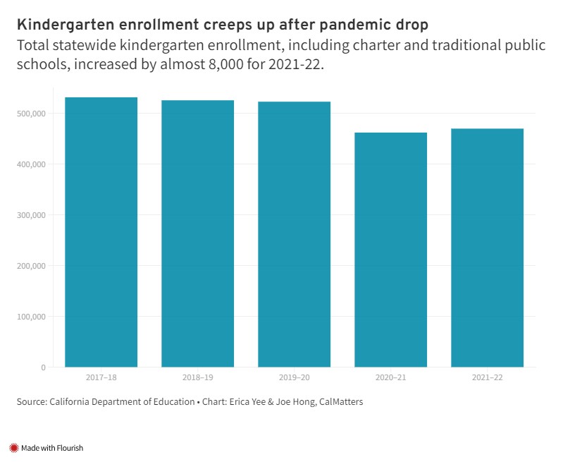 - Kindergarten enrollment is up, though nowhere near pre-pandemic levels.