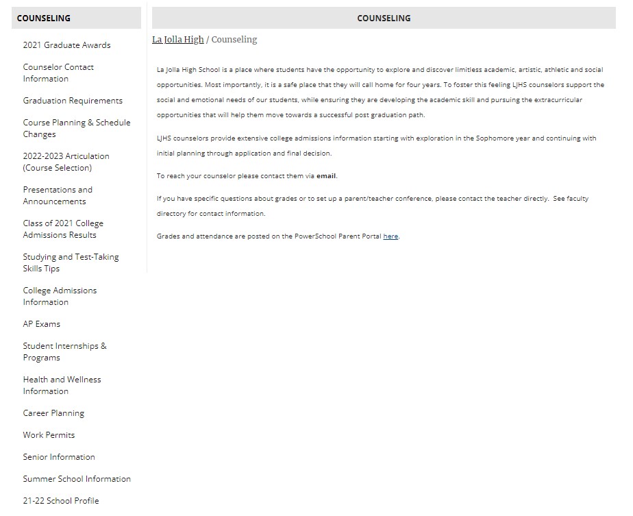 The full educational offerings are available to ALL LJHS Cluster and ALL SDUSD Stakeholders via the “Counseling” tab.