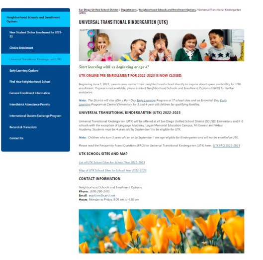 Source: San Diego Channel 10 – May 12, 2022: SDUSD offering UTK classes at most elementary schools in the fall
