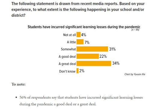 56% of respondents say that students have incurred significant learning losses during the pandemic a good deal or a great deal.
