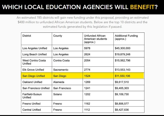 A bill that would generate over $400 million for an estimated 785 public school districts across the state to provide critically needed academic support for Black students is on its way to the California Senate Committee on Appropriations.