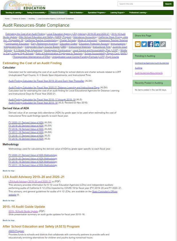 Here is the California Department of Education 2022-23 Guide for Annual Audits of K-12 Local Education Agencies and State Compliance Reporting