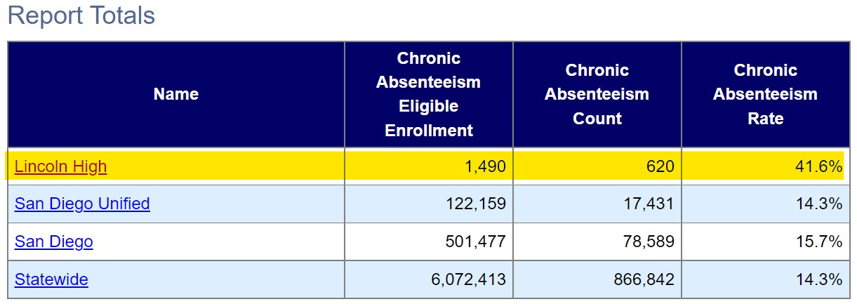 The report below regarding Chronic Absenteeism says that 620 out of the 1,490 Students at Lincoln are chronically absent.